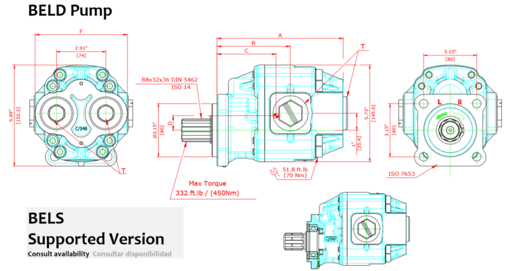 Hydraulické obousměrné zubové čerpadlo Bezares řady BEL D je litinové čerpadlo s bočními i zadními porty. Je navrženo a vyvinuto pro širokou škálu aplikací a nabízí vysokou účinnost a výkon. K dispozici je široká nabídka přírub, hřídelí, objemových variant a možností připojení. Dostupné také ve variantě BEL S, které je vybaveno podpůrným ložiskem na konci hřídele, které absorbuje radiální zatížení.