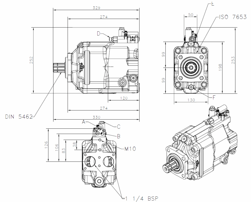 Hydraulické pístové čerpadlo Bezares FRV s regulací průtoku a tlaku (Load Sensing) nabízí tři volitelné objemy – 95, 110 nebo 130 cm³/ot. Umožňuje snadnou změnu směru rotace bez nutnosti interního zásahu do čerpadla. Díky kompaktní konstrukci je vhodné pro přímou montáž na pomocný pohon (PTO) v zemědělských, lesnických, manipulačních nebo komunálních strojích.