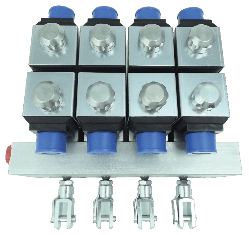 Každá sekce bloku se skládá z modulárních hydraulických pístů s mechanickou zpětnou vazbou, ovládaných pomocí několika proporcionálních elektroventilů.